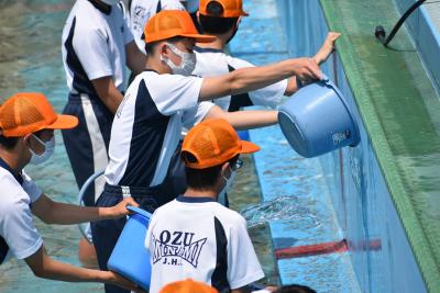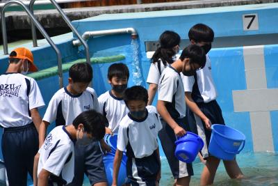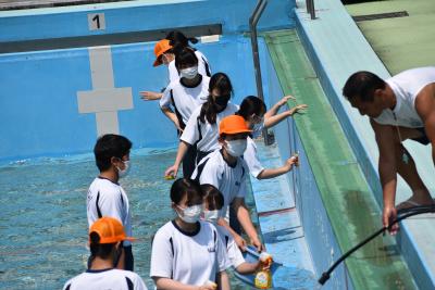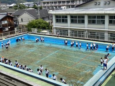 暑い中、一生懸命掃除に取り組んでくれたおかげで、プールもピカピカになりました!