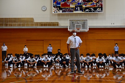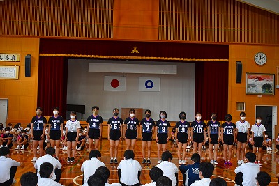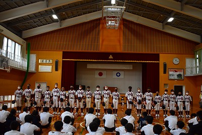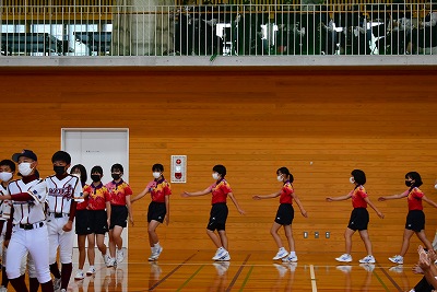 2022年5月30日 14時38分本日、明日から始まる市郡総体の壮行会がありました。吹奏楽部の演奏に合わせて、各部の選手が入場してきました。