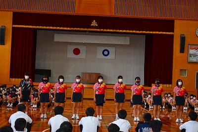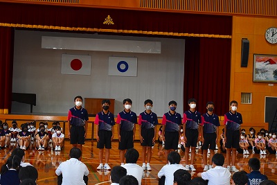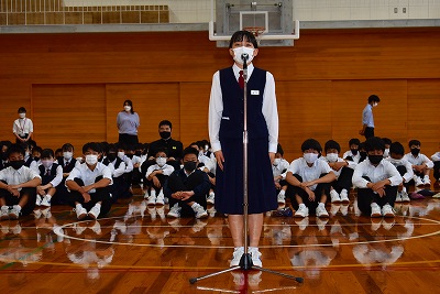 残留生徒を代表して、吹奏楽部部長が応援のメッセージを送りました。