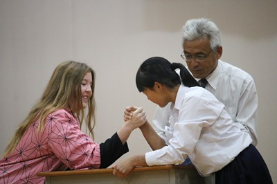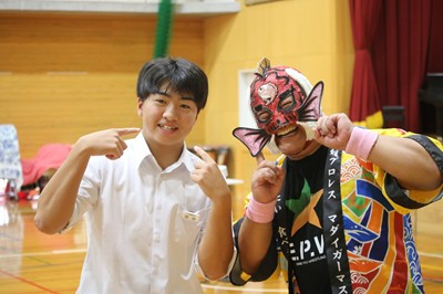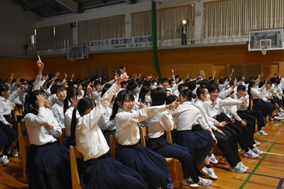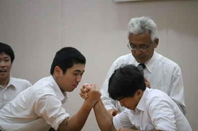 体育館では、座席づくりをしてスローガン掲示、照明のセッティング、放送機器の調整…