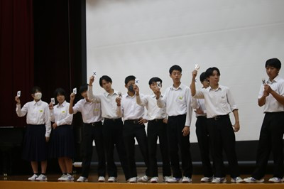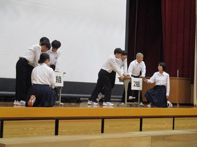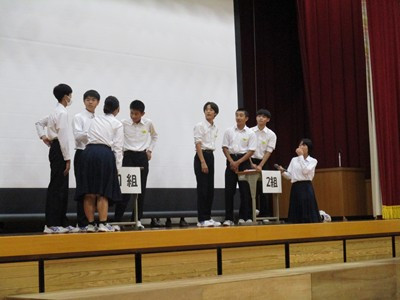 午後からは、発表のメンバーがリハーサルを行いました。内容は本番までのお楽しみということなので、生徒会企画イントロクイズのリハーサルの様子だけ…