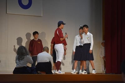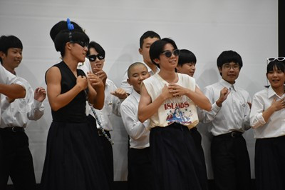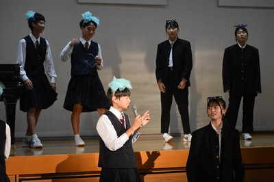 午後からは、発表のメンバーがリハーサルを行いました。内容は本番までのお楽しみということなので、生徒会企画イントロクイズのリハーサルの様子だけ…