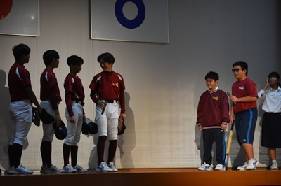 体育館では、座席づくりをしてスローガン掲示、照明のセッティング、放送機器の調整…